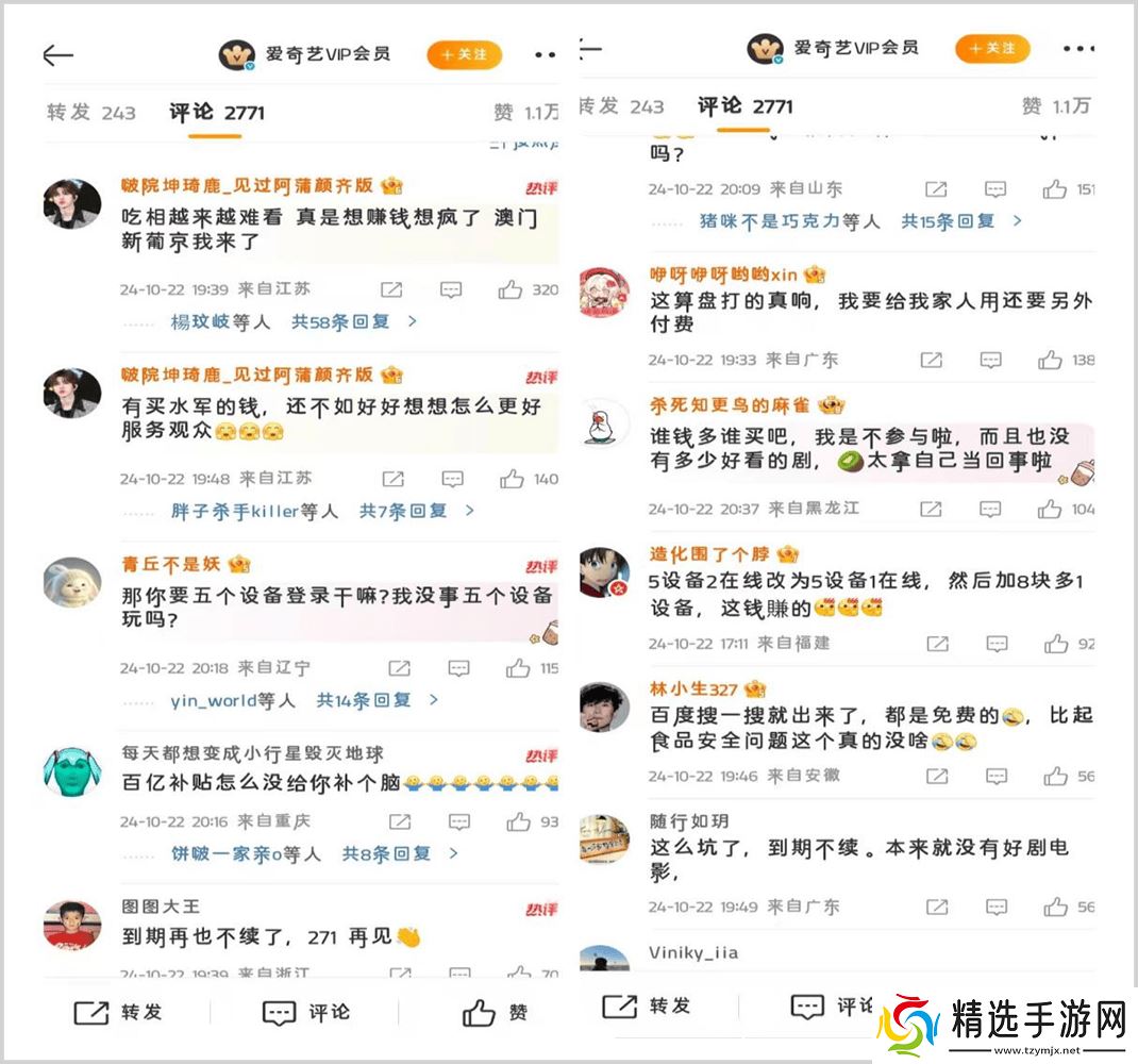 对于这击表面上“技术封堵+亲情疏导”,实则变相收费的组合拳,用户自然不买账,纷纷吐槽爱奇艺:“想钱想疯了”、“吃相难看”、“薅羊毛”……
