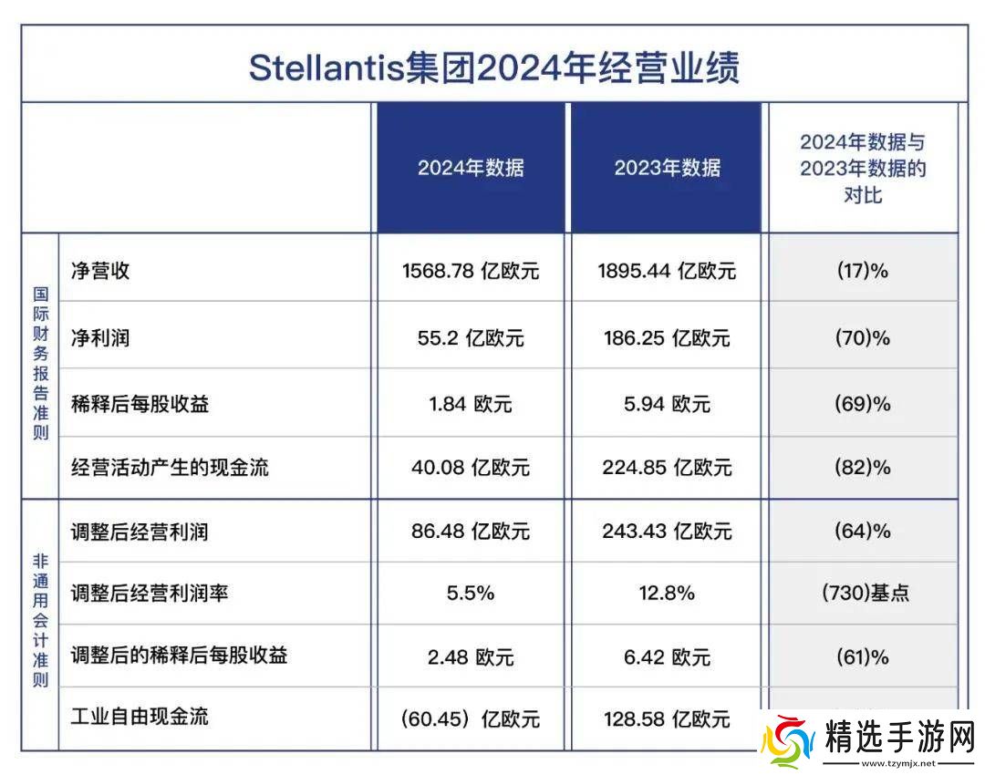 Stellantis集团近期公布的2024年度财报揭示了该集团在过去一年中的严峻挑战。数据显示,该集团全年净收入降至1569亿欧元,与上一年度相比减少了17%。净利润更是大幅下跌70%,仅为55亿欧元。调整后的营业收入和营业利润率也分别下跌了64%和7.3个百分点,达到86亿欧元和5.5%。