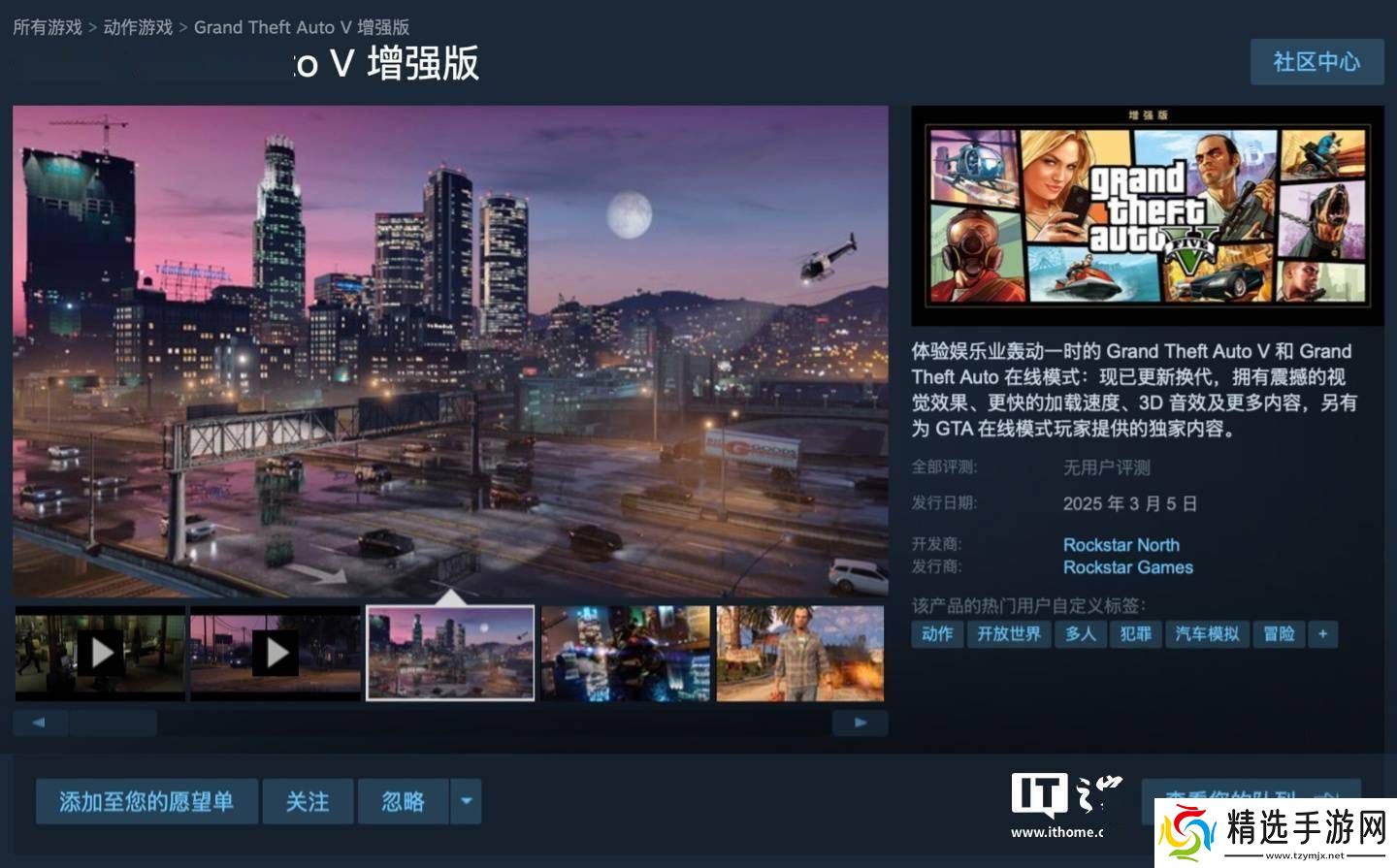 R星宣布,《GTA 5》即将迎来重大更新,这一被命名为“次世代更新”的版本将于北京时间3月5日正式上线。与以往通过补丁覆盖不同,此次更新将以一个全新的独立游戏版本形式呈现,并已在Steam平台上架。所有已拥有《GTA 5》的玩家将在游戏库中看到新增的《GTA5 增强版》,届时只需简单下载即可体验。