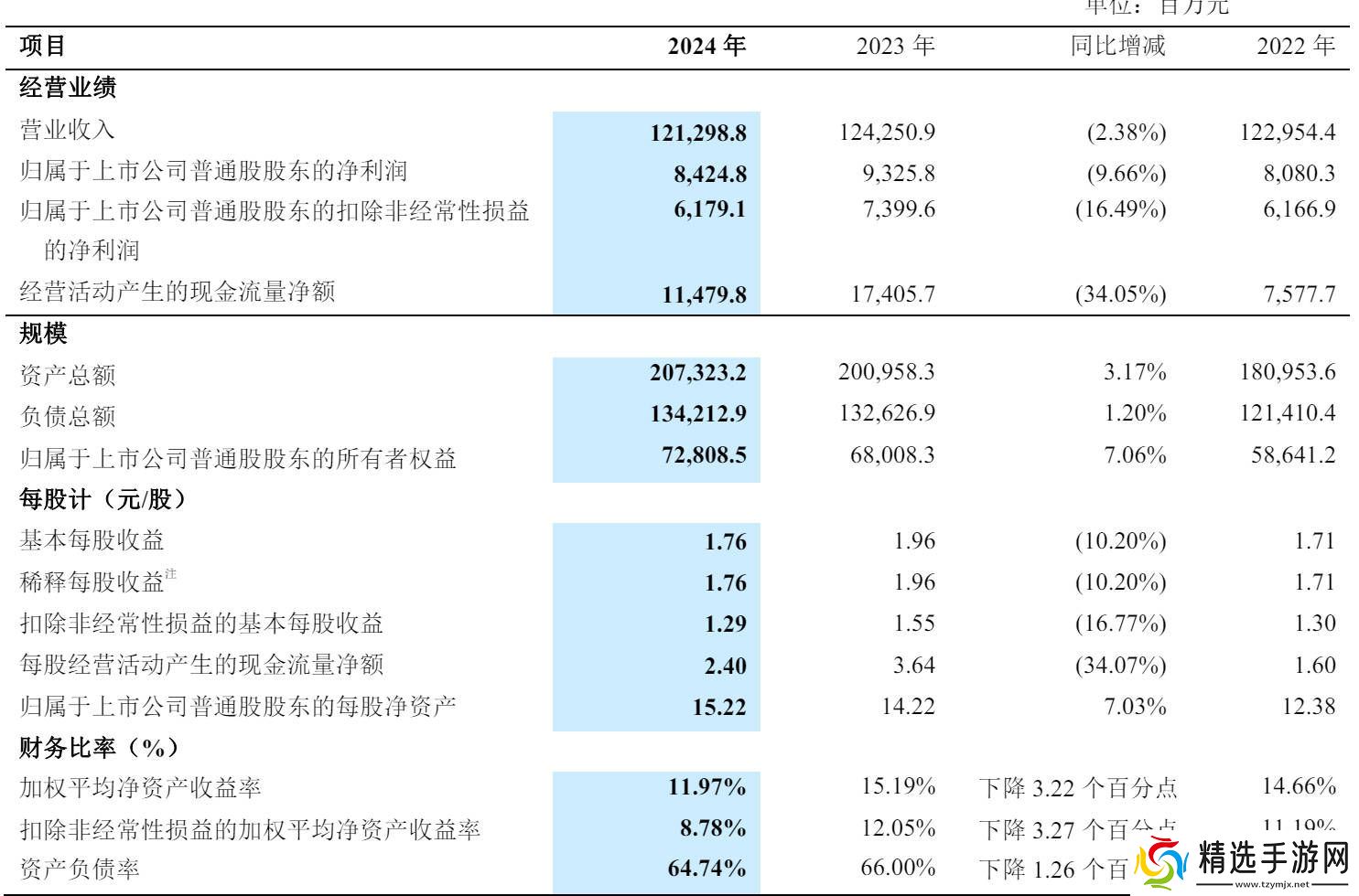 中兴通讯2024年净利为84.24亿元,较上年同期的93.25亿元下降9.66%;扣非后净利为61.79亿元,较上年同期的74亿元下降16.49%。