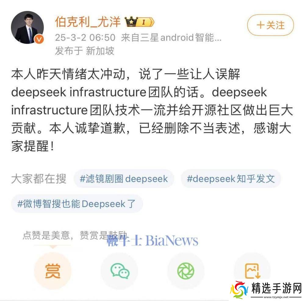 鞭牛士 3月2日消息,今日早间,潞晨科技CEO尤洋在微博发文表示:“本人昨天情绪太冲动,说了一些让人误解deepseek infrastructure团队的话。deepseek infrastructure团队技术一流并给开源社区做出巨大贡献。本人诚挚道歉,已经删除不当表述,感谢大家提醒!”