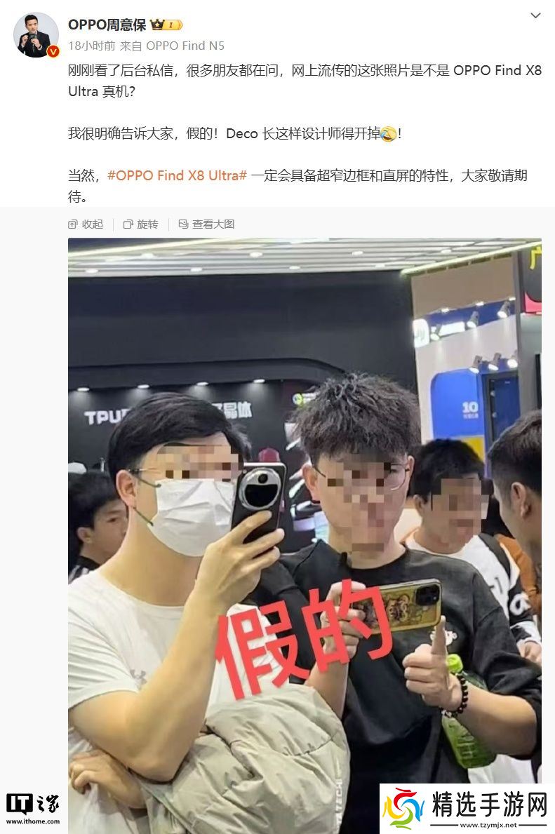 本站 3 月 3 日消息,近日一张神秘新机的图片在网络平台流传,不少网友认为是 OPPO Find X8 Ultra 手机。OPPO Find 系列产品负责人昨日转发了该图片,并明确表示“假的!Deco 长这样设计师得开掉!”