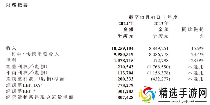 报告显示,2024 年,极兔净利润达到 1.1 亿美元(当前约 7.99 亿元人民币),较 2023 年亏损 11.6 亿美元(当前约 84.22 亿元人民币)大幅好转;经调整净利润约 2 亿美元(当前约 14.52 亿元人民币),超出市场预期。经调整 EBITDA 达到 7.8 亿美元(当前约 56.63 亿元人民币),大幅增长 430.5%;经调整 EBIT 转正,达到 3 亿美元(当前约 21.78 亿元人民币)。