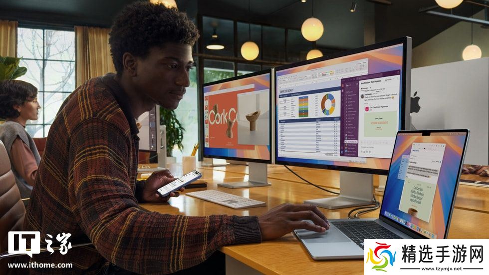 新款 MacBook Air 支持在屏幕打开状态下连接两台 6K 外部显示器,加上内置显示器,可满足用户多屏显示的需求。