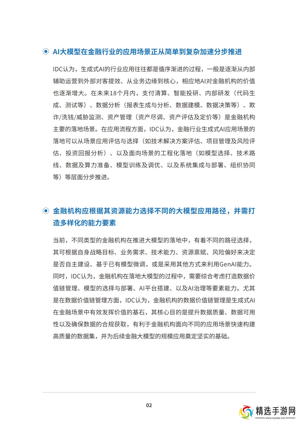 4. 应用路径与关键能力:金融机构落地大模型有自主开发、基于通用模型优化、接入API和与战略伙伴协同等路径,应根据自身情况选择。落地过程需具备数据价值链管理、模型选择部署、AI平台搭建和AI治理等关键能力,以保障大模型有效应用。
