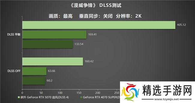 在2K分辨率的最高画质下,GeForce RTX 4070 SUPER和GeForce RTX 4070在DLSS 3性能模式中分别实现了169.41帧和133.54帧的表现,展现了卓越的性能。然而,耕升 GeForce RTX 5070 追风在DLSS 4平衡模式下的表现更为惊艳,平均帧数达到了405.12帧。耕升 GeForce RTX 5070 追风借助DLSS 4技术的进一步优化,让玩家在激烈的战斗中,能够享受到更加丝滑的操作体验。