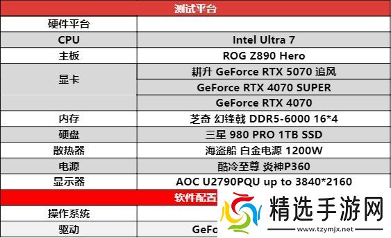 本次测试将采用以下配置:CPU选用了Intel Ultra 7,搭配ROG Z890 HERO主板,内存方面搭载了4条芝奇 幻锋戟 DDR5-6000Hz 16GB内存条,电源方面则采用了海盗船 白金1200W电源,散热部分则使用了酷冷至尊 炎神P360一体式水冷。这套经过精心设计的配置,不仅为GPU提供了高效的处理能力,还进一步稳定了显卡的温度,这套配置使得耕升 GeForce RTX 5070 追风拥有十分高效性能,无论是应对复杂的图形处理任务,还是运行高负载的游戏,都能轻松胜任。