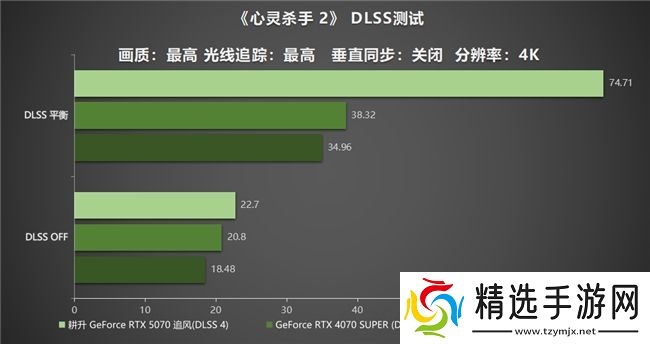 然而,随着画面精细度的提升,游戏对硬件配置的要求也显著增加。在测试中可以看到,在4K分辨率下,作为成绩最优异的耕升 GeForce RTX 5070 追风,在最高画质、光线追踪开启、DLSS关闭时,帧数也仅有22.7帧。而在开启DLSS 4技术后,性能有着卓越的提升,平均帧数达到了74.71帧,拥有近94%的性能提升。由此可见,在面对《心灵杀手2》这样对硬件配置要求极高的游戏时,耕升 GeForce RTX 5070 追风凭借DLSS 4技术的强大支持,也能让玩家感受到4K分辨率下流畅的游戏体验。