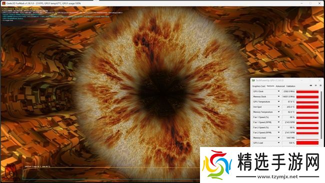 接下来使用负载软件FurMark来测试耕升 GeForce RTX 5070 追风的功耗控制能力。在开启负载软件压榨GPU后,待温度与功耗达到稳定,测试得出最终GPU功耗为249.7W,温度67.9℃,有着非常优异的性能表现。