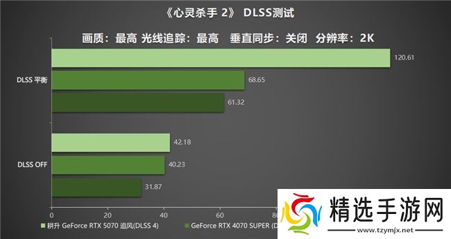 在2K分辨率下,当启用DLSS 4技术后,耕升 GeForce RTX 5070 追风的平均帧数可达120.61帧,性能提升接近2倍。这一惊人的表现不仅能够让玩家充分感受到光线追踪技术带来的视觉震撼,还能在高帧率下享受流畅的游戏体验。可以说,耕升 GeForce RTX 5070 追风在DLSS 4技术的加持下,成为了让玩家可以畅玩《心灵杀手2》的理想选择。