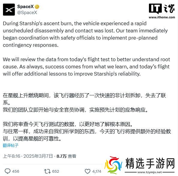 SpaceX 随后发 X 表示:将审查今日飞行测试的数据,以更好地查明问题根本所在。