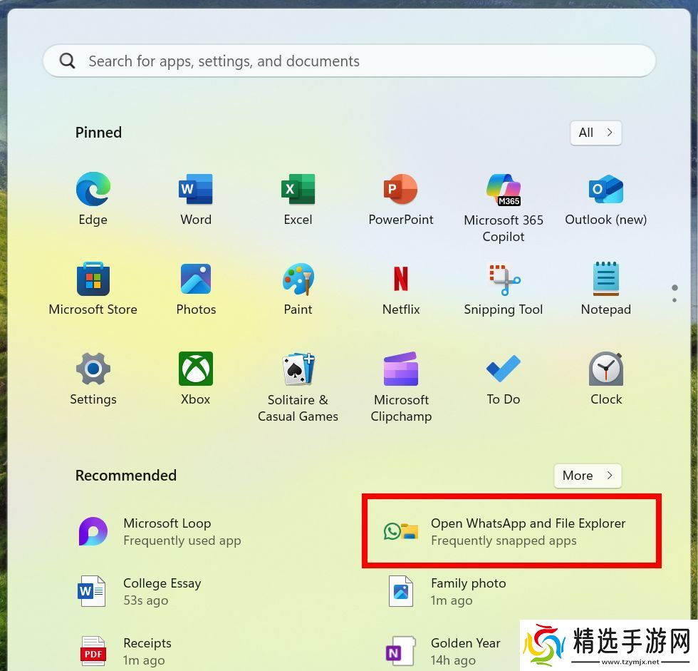 微软正在测试一项新功能,根据用户最可能同时使用的两个应用,在开始菜单的推荐部分推荐应用组合。本站附上截图如下,可以同时打开WhatsApp和文件管理器:
