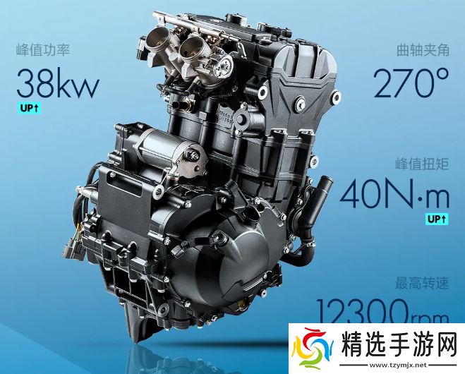 本站从官方介绍获悉,这款新车采用 449cc 超级平台,发动机峰值功率 38kW、峰值扭矩 40N・m,曲轴夹角 270°,最高转速 12300rpm。