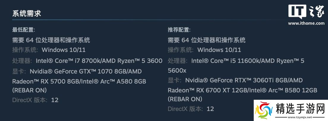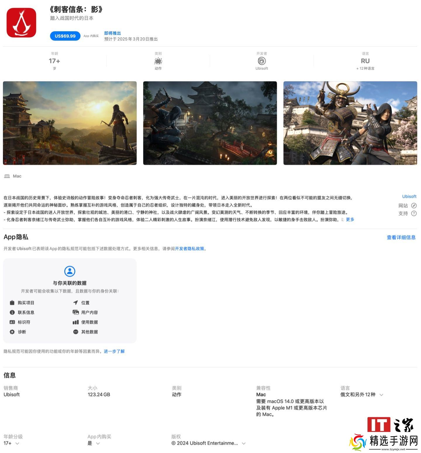 作为比较,育碧《刺客信条:影》macOS版显示最低支持M1芯片运行,而游戏Windows版至少需要i7-8700K /锐龙5 3600处理器及GTX1070 / RX 5700显卡。