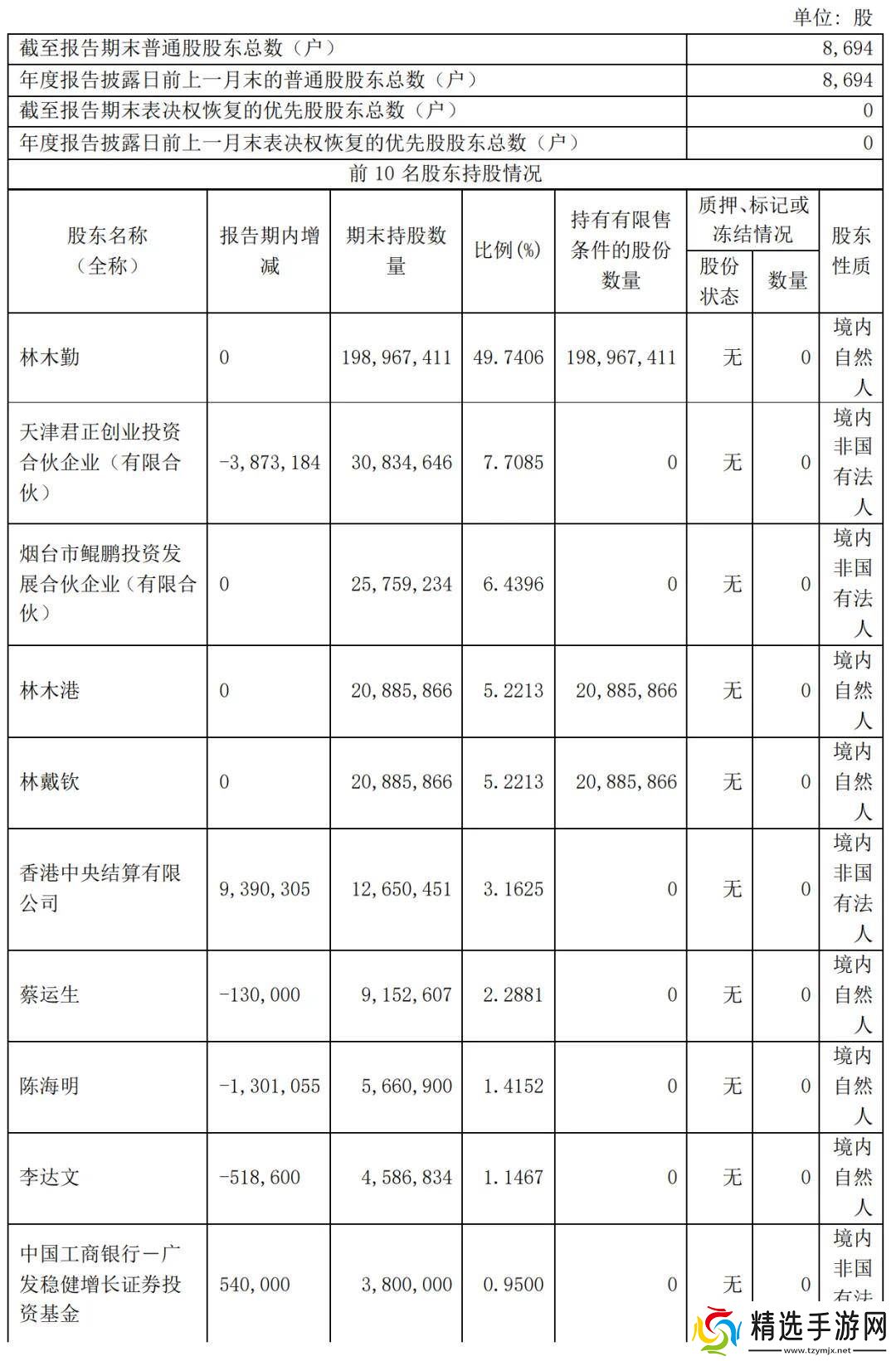 在股权结构方面,林木勤作为公司创始人,持有49.74%的股权,为第一大股东。香港中央结算有限公司、烟台市鲲鹏投资发展合伙企业(有限合伙)等也持有一定比例的股权。值得注意的是,君正投资在2024年减持了部分股权,持股比例有所下降。