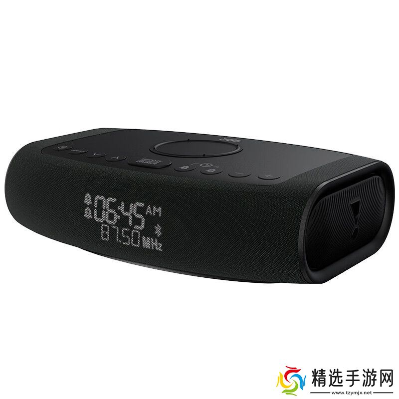 这款蓝牙音箱整体造型简洁,采用坞站式外观设计,配备可调亮度大字符 LED 显示屏,同时配有独立物理按压控件(顶部实体按键),适合放在床头使用。