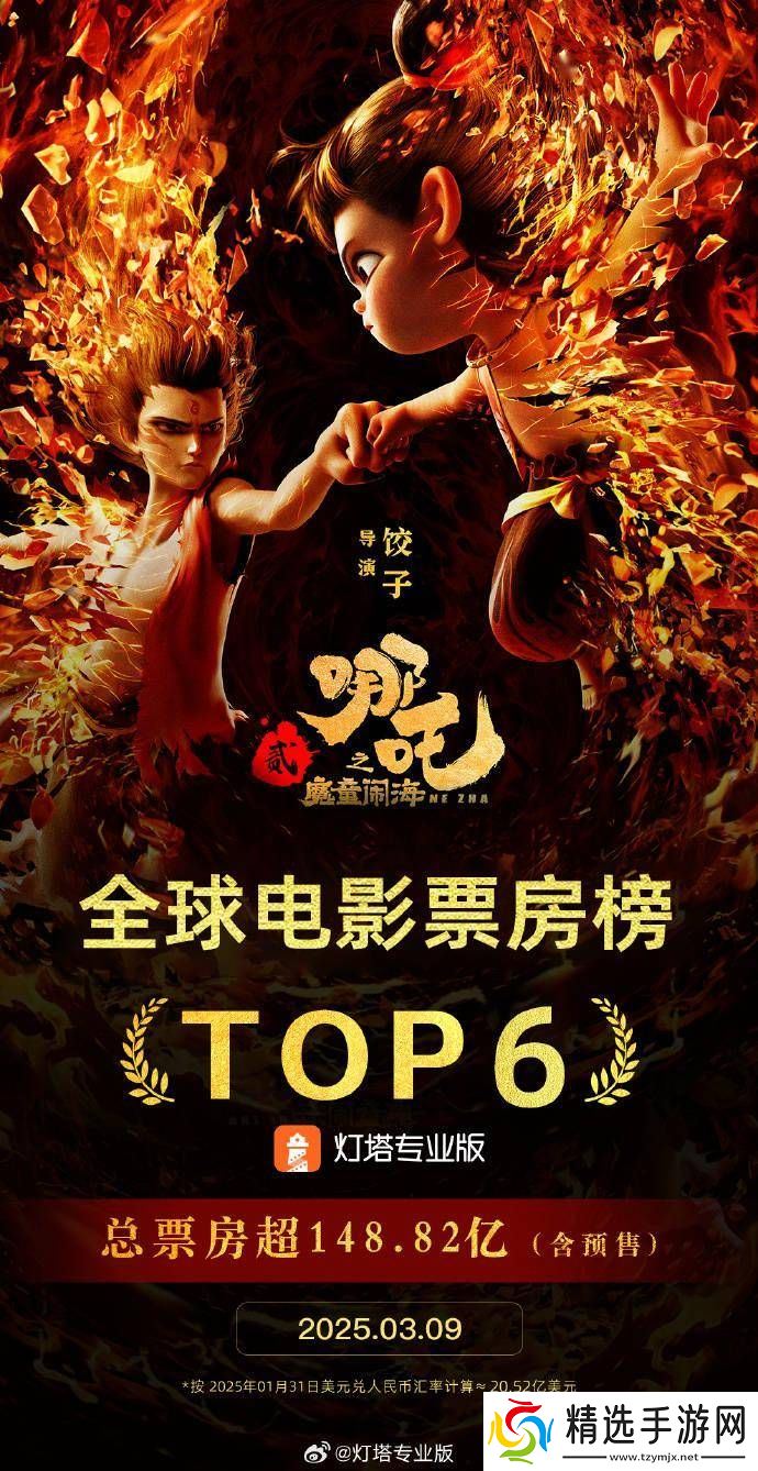 近期,全球电影市场传来震撼消息,国产动画电影《哪吒之魔童闹海》在票房上取得了重大突破。根据灯塔专业版全球票房榜的最新数据,截至某一时刻,该影片的全球票房(包括预售在内)已成功跨越148.82亿大关,这一成绩不仅令人瞩目,更将其推上了全球影史票房榜的前六强宝座。