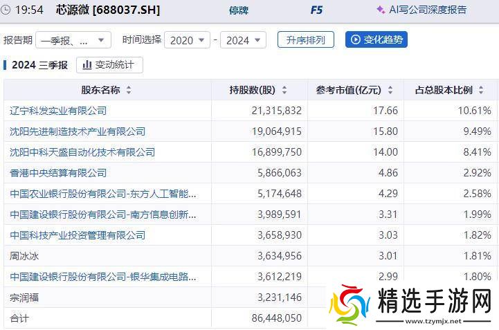 截至2024年9月末,芯源微前三大股东分别为辽宁科发实业有限公司(简称“科发实业”)、先进制造、中科天盛。其中,第一大股东、第三大股东为国有法人。