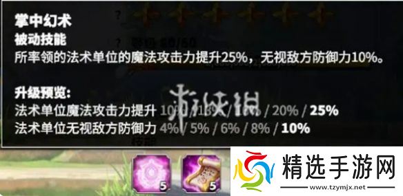 所率领的法术单位的魔法攻击力提升25%,无视敌方防御力10%。