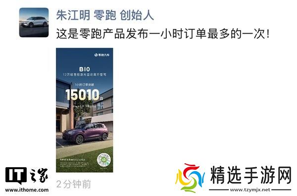本站 3 月 10 日消息,零跑汽车官方宣布,其全新车型零跑 B10 在开启预售仅 1 小时后,订单量便突破了 15010 辆,刷新了品牌历史记录。零跑创始人在朋友圈表示,这是零跑产品发布以来,一小时内订单量最多的一次。
