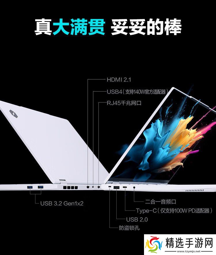接口方面,该机提供了 USB4(140W 快充)、RJ45 千兆网口、HDMI 2.1、USB 3.2 Gen1x2、Type-C(仅支持 100W PD 适配器)、USB 2.0、3.5mm二合一音频接口。