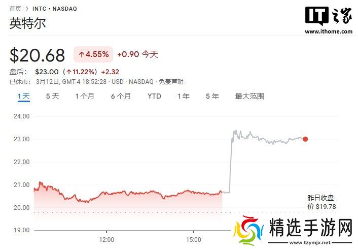 上述消息公布后,英特尔股价盘后大涨 11.22%,而且在周三美股常规交易中已上涨 4.55%。过去 12 个月内,英特尔股价累计下跌超过 54%,目前市值已跌至 891.93 亿美元(本站备注:当前约 6451.62 亿元人民币)。