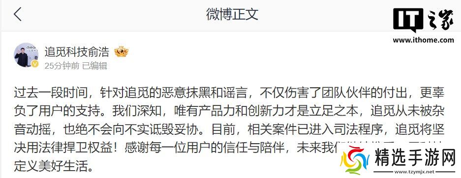 对此,追觅科技创始人兼 CEO 俞浩回应表示,“过去一段时间,针对追觅的恶意抹黑和谣言,不仅伤害了团队伙伴的付出,更辜负了用户的支持。我们深知,唯有产品力和创新力才是立足之本,追觅从未被杂音动摇,也绝不会向不实诋毁妥协。目前,相关案件已进入司法程序,追觅将坚决用法律捍卫权益!感谢每一位用户的信任与陪伴,未来我们继续携手,用科技定义美好生活。”