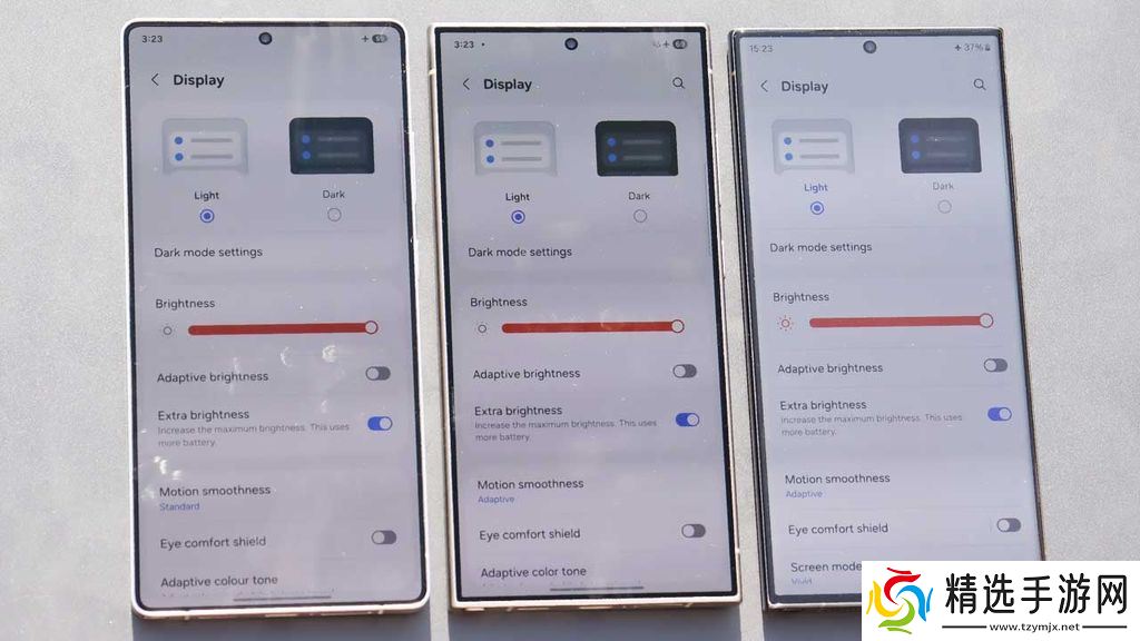Galaxy S23 Ultra:传统玻璃面板,强光下反光严重,色彩失真明显