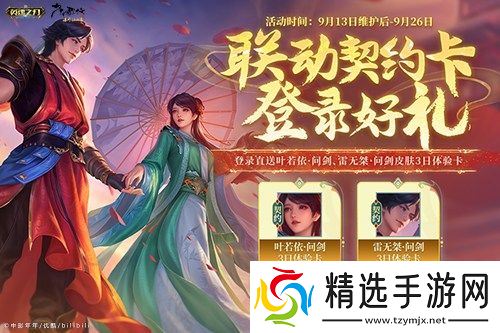 即日起-9月26日,登录游戏即可领取【叶若依-问剑】和【雷无桀-问剑】皮肤体验卡,免费体验联动皮肤。9月27日登录更有持续惊喜好礼相送!参与仙山探宝活动,完成任务可获得藏宝图碎片,免费兑换【叶若依-问鼎】皮肤!