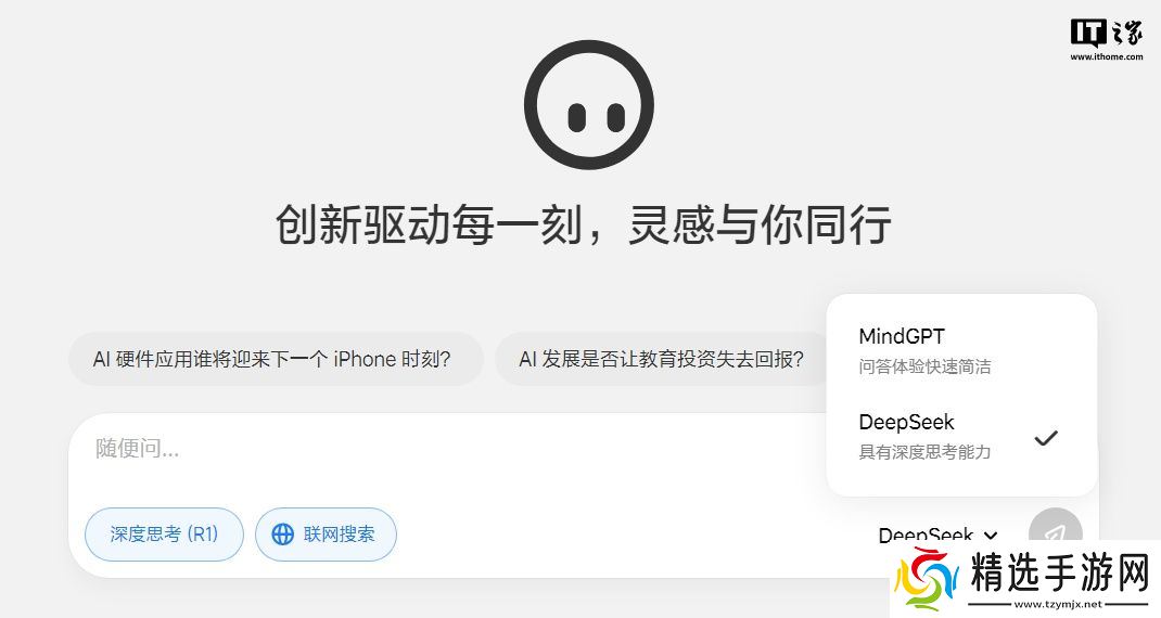理想同学网页版全面接入 DeepSeek R1&V3 671B 满血版,问答支持切换选择 MindGPT-3o 模型、满血版 DeepSeek 模型,支持选择是否连接互联网进行搜索(MindGPT 模型下默认支持联网)。在 DeepSeek 模型下,可选择开启或关闭深度思考,开启深度思考后,将支持更强大的推理能力。