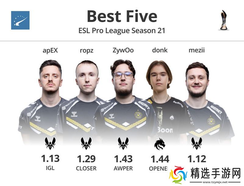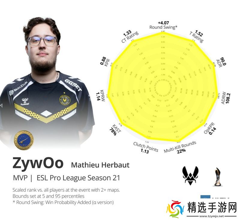 在MOUZ战队获胜的地图中,torzsi的优势依然明显,他的rating为1.33,RS为+3.82。MOUZ队员的数据受到了五张地图不敌Vitality的惨败以及一段艰难赛程(与Top5战队进行了8场地图比赛)的影响,但他们的狙击手torzsi还是凭借出色表现获得了赛事最后一个EVP荣誉。