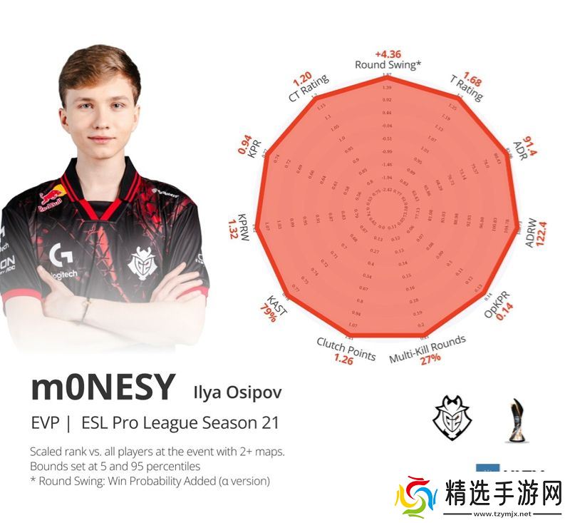 MOUZ战队的队友,同时在KPRW(0.97)方面也位居榜首,从而获得了他个人第二个EVP奖项。