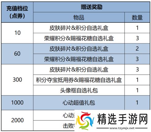 皮肤碎片&积分自选礼盒:打开礼包可任意选择以下奖励之一:荣耀积分*10或皮肤碎片*1