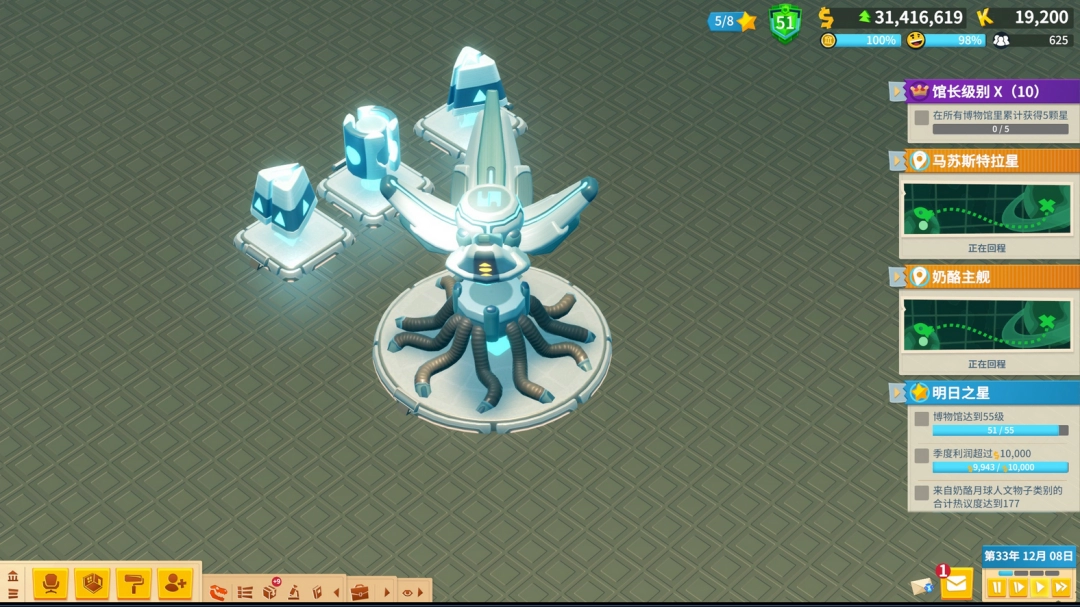 《双点博物馆》中的星际异象的数量是非常多的,而不同星际异象的激活解锁条件各不相同,首先是异象银河球茎,激活解锁需要的条件就是三角形电池X2和圆柱形电池X1。