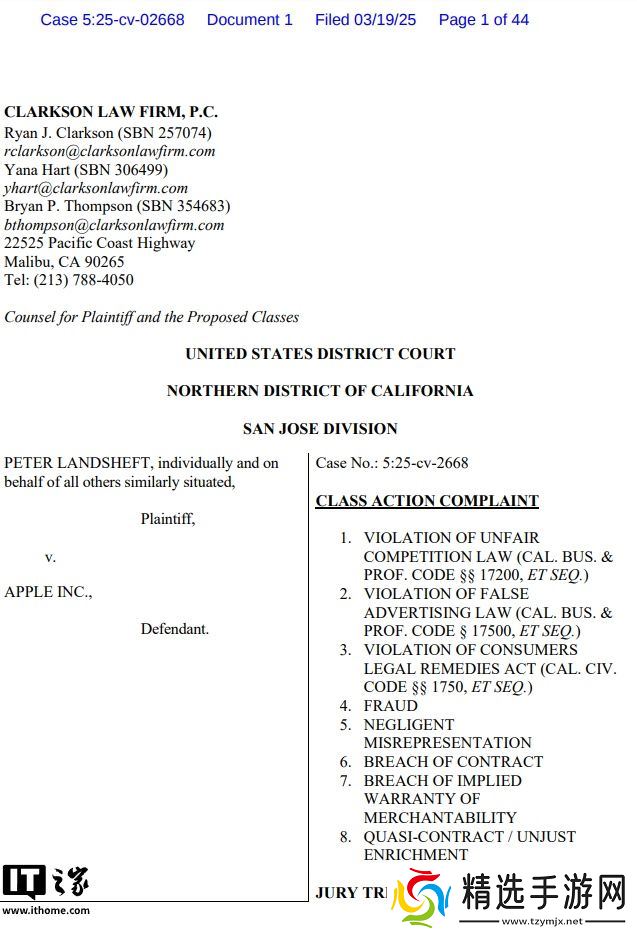 此次诉讼是在加州圣何塞联邦法院提起的,原告主张苹果应赔偿所有购买支持 Apple Intelligence 设备(包括 iPhone、iPad 和 Mac)的用户,并寻求法院确认集体诉讼资格。