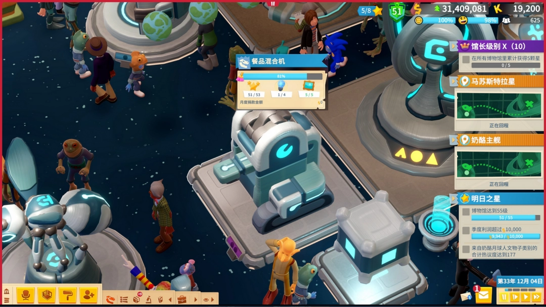 《双点博物馆》中的星际异象的数量是非常多的,而不同星际异象的激活解锁条件各不相同,首先是异象搅拌装置,激活解锁需要的条件就是圆柱形电池X2,方形电池X1,搅拌装置激活后就是餐品混合机。