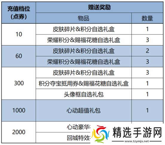 皮肤碎片&积分自选礼盒:打开礼包可任意选择以下奖励之一:荣耀积分*10或皮肤碎片*1
