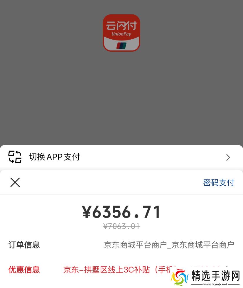 下单后使用“云闪付”支付,可再打 9 折,实付 6356.71 元即可入手: