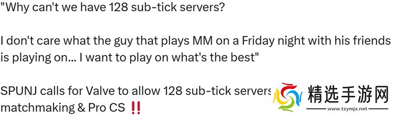 日前澳大利亚分析师SPUNJ在做客HLTV茶话会时,分享了自己对当前游戏服务区sub-tick的看法。他呼吁V社更新128tick服务器。