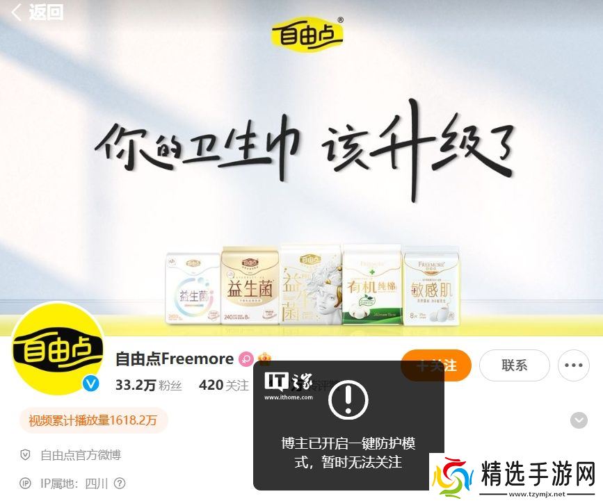 本站注意到,在 315 晚会曝光后,自由点官方微博已启用一键防护模式,用户暂不支持搜索和关注该账号。