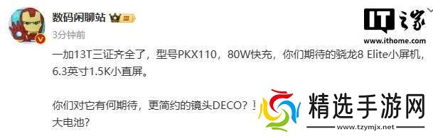 尽管一加方面尚未正式宣布这款新机的具体上市时间和名称,但@数码闲聊站的爆料已经让众多消费者充满期待。随着更多信息的陆续曝光,相信一加13T将很快与大家见面,为用户带来更多惊喜。