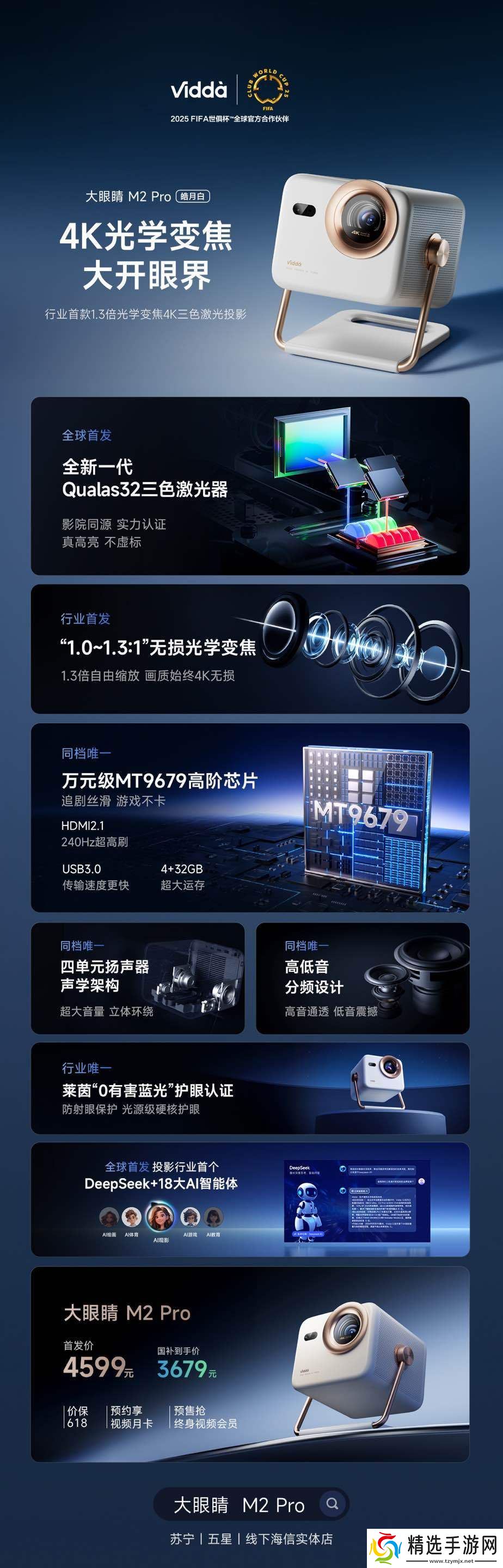 本站 3 月 14 日消息,Vidda 今日发布了大眼睛 M2 Pro 4K 三色激光投影仪新品,首发预售价 4599 元(本站注:国补到手价 3679 元)。