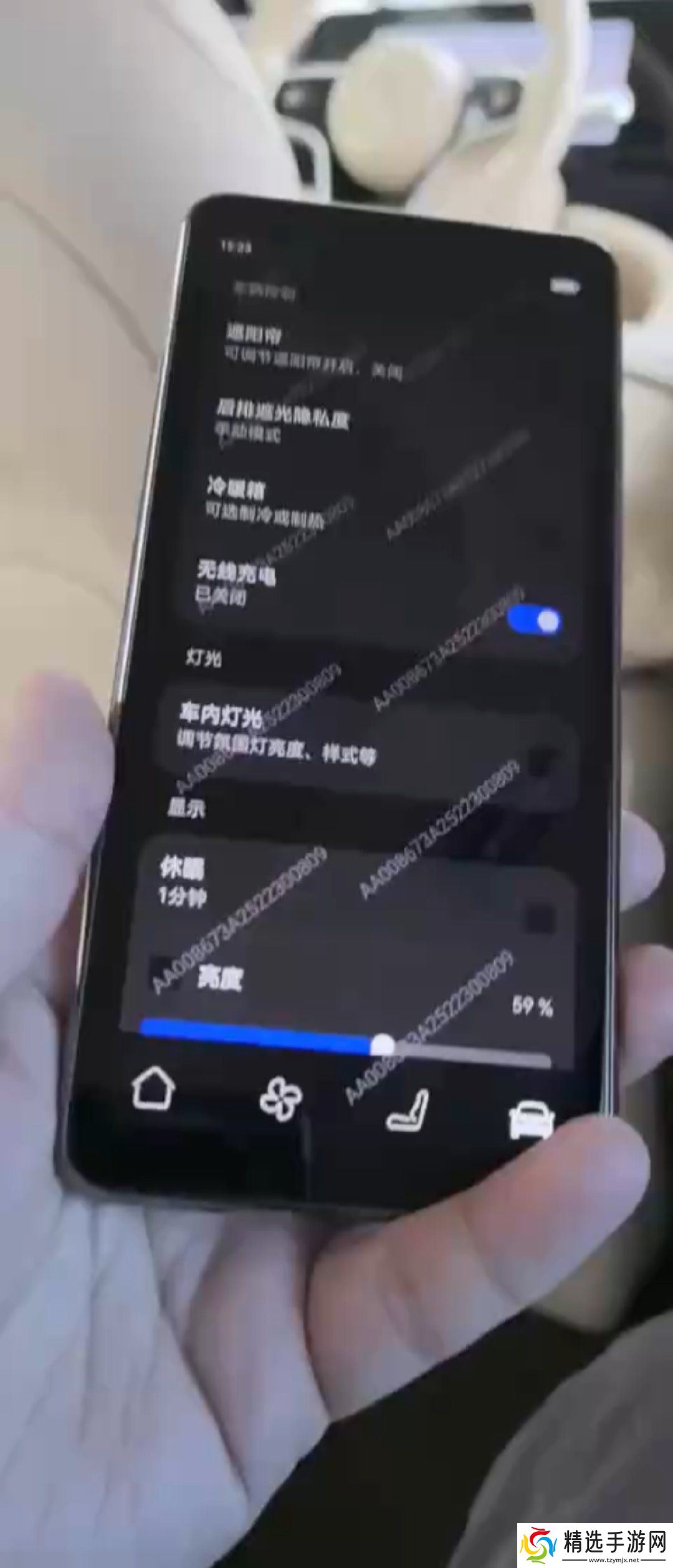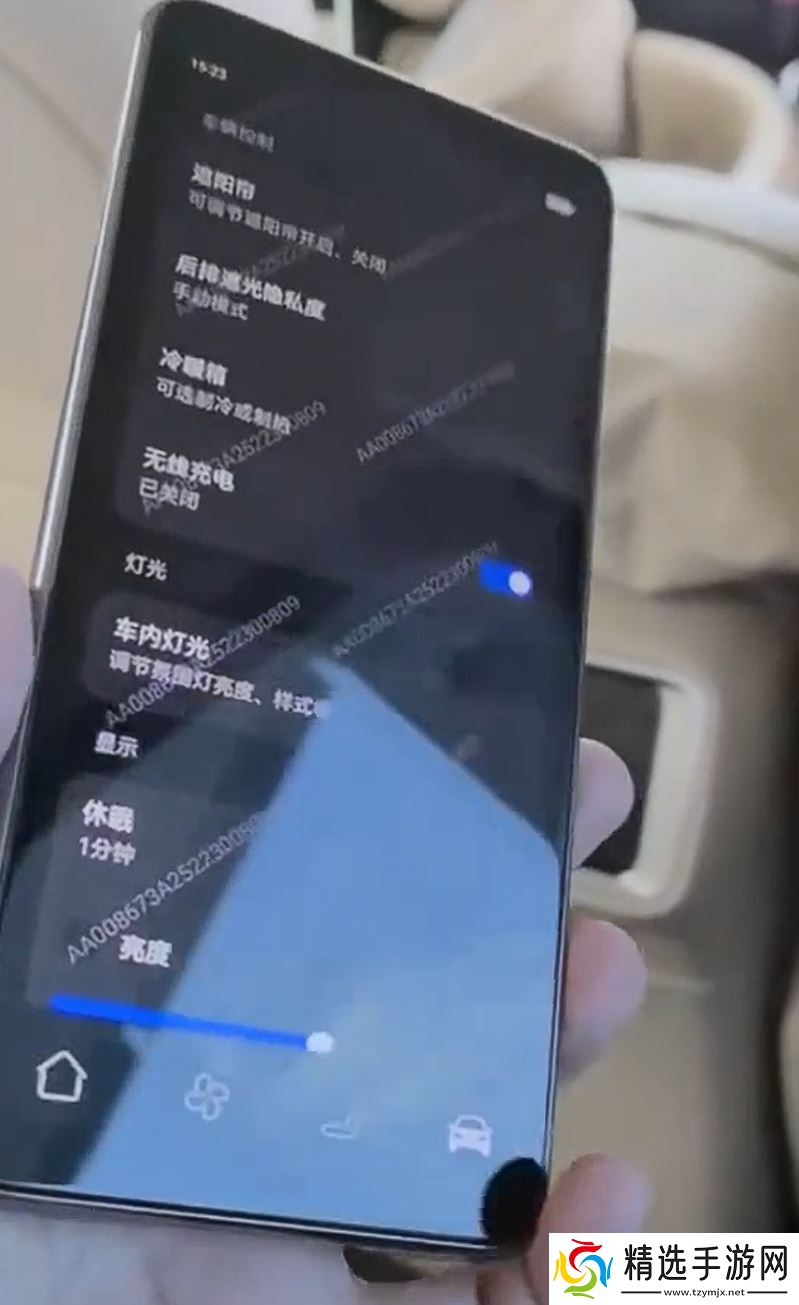 视频中车内出现了一块带伸缩结构设计的收纳区域,遥控器可磁吸在印有 AITO 字样的黑色面板上,而后通过该收纳区域的伸缩结构可“嵌入”中央扶手箱的背部。