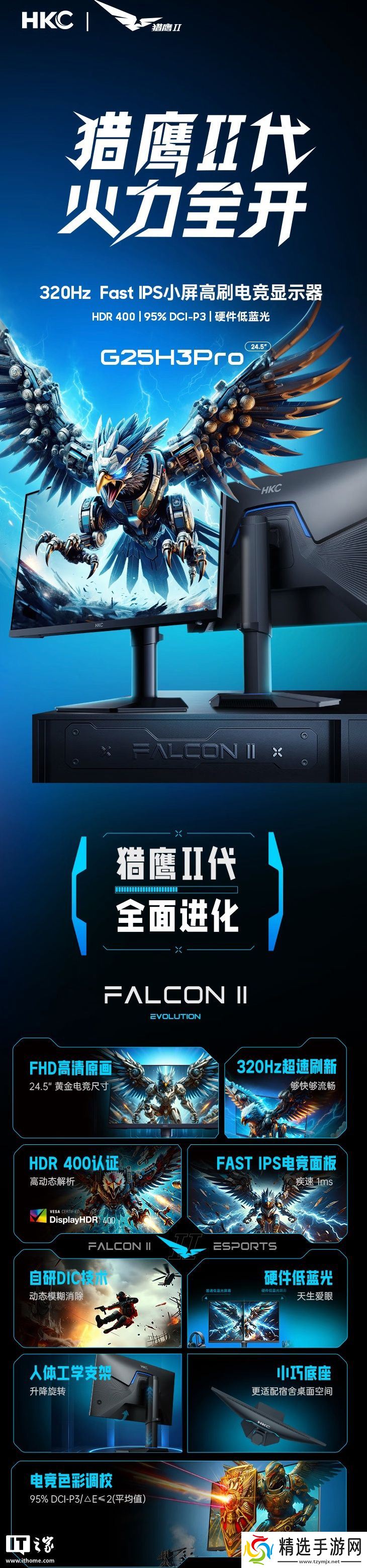 本站 3 月 17 日消息,HKC 现已在京东上架一款型号为“G25H3Pro”的 24.5 英寸显示器,这款显示器主打“1080P 320Hz(超频)”,定价为 999元,国补后849元。