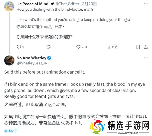 当然,频繁使用这一技巧也给Whatley带来了不小的痛苦。眼部疼痛时常伴随着他,但他依然坚持着。他自嘲这一招有“冷却时间”,需要合理使用。尽管如此,他从未后悔过自己的选择。