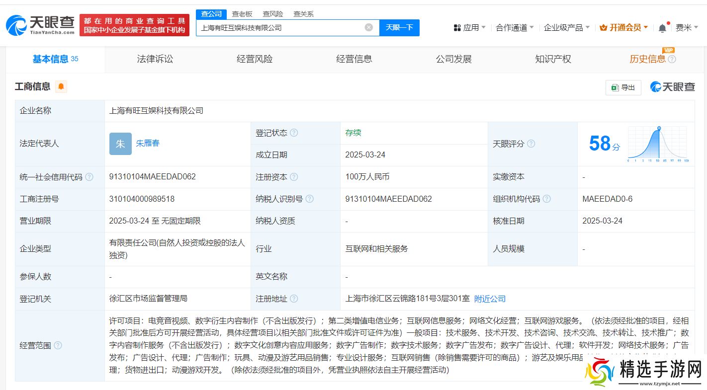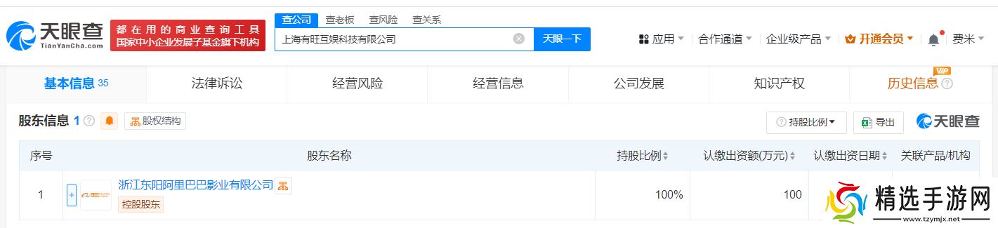 值得注意的是,上海有旺互娱科技有限公司的背后有着强大的资本支持。天眼查进一步揭示,该公司由浙江东阳阿里巴巴影业有限公司全资控股。这一背景无疑为上海有旺互娱在业界的发展提供了坚实的后盾和丰富的资源。