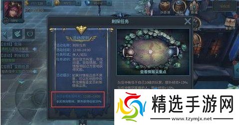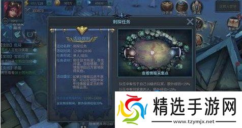 4、接取任务:在任务开启后,主城有提示,点击即可前往接取任务,也可以在主页右下角点击刺探任务前往,每天仅可参与3次任务
