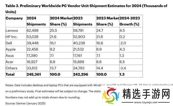 在全球PC市场复苏的大背景下,戴尔的员工数量减少显得尤为突出。据市场研究机构数据显示,2024年全球PC出货量达到2.453亿台,同比增长1.3%。在主要品牌排名中,联想、惠普、戴尔、苹果、华硕和宏碁占据前六席。然而,戴尔却成为这六大品牌中唯一出货量下滑的企业,其出货量下降了2%。