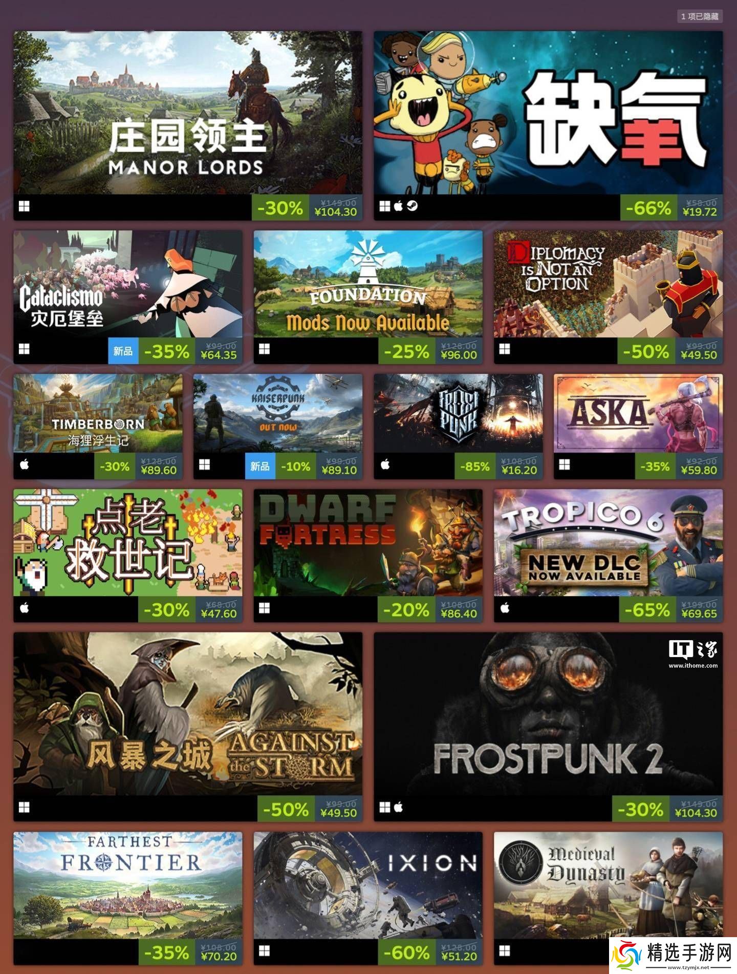 在折扣游戏方面,众多备受玩家喜爱的作品纷纷加入此次促销行列。其中,《庄园领主》、《缺氧》、《灾厄堡垒》、《Foundation》、《海狸浮生记》、《海岛大亨6》、《冰汽时代2》以及《城市:天际线2》等经典与新作均迎来了不同程度的折扣优惠。这些游戏涵盖了从现代都市建设到古代庄园管理,从极端环境求生到海岛帝国扩张等多种玩法,满足了不同玩家的游戏需求。