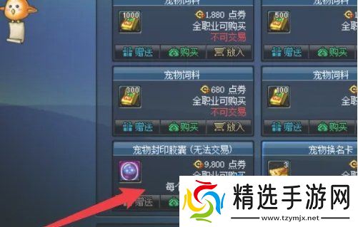4、最后找到宠物封印交易后,花费9800点券即可购入。
